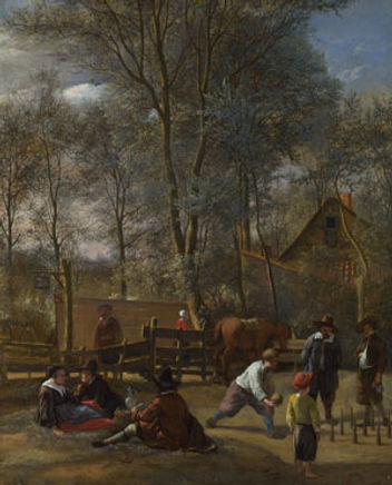 Skittle Players outside an Inn. panel. ca 1658-1700. 35 × 28 cm. The National Gallery, London. www.nationalgallery.org.uka